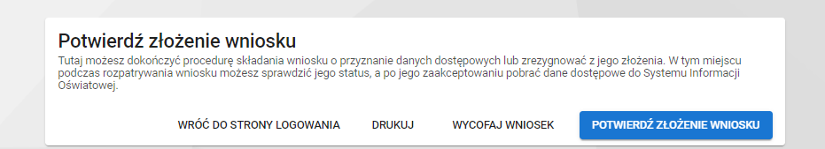 Chęć złożenia wniosku o uzyskanie danych dostępowych należy potwierdzić poprzez kliknięcie ZŁÓŻ WNIOSEK.